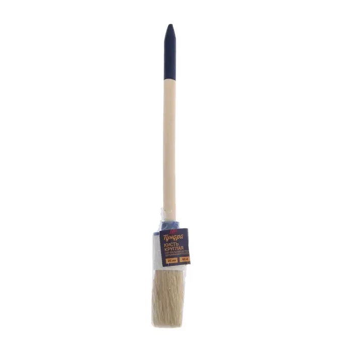 Кисть круглая ТУНДРА, натуральная щетина, деревянная рукоятка, № 4, 25 мм