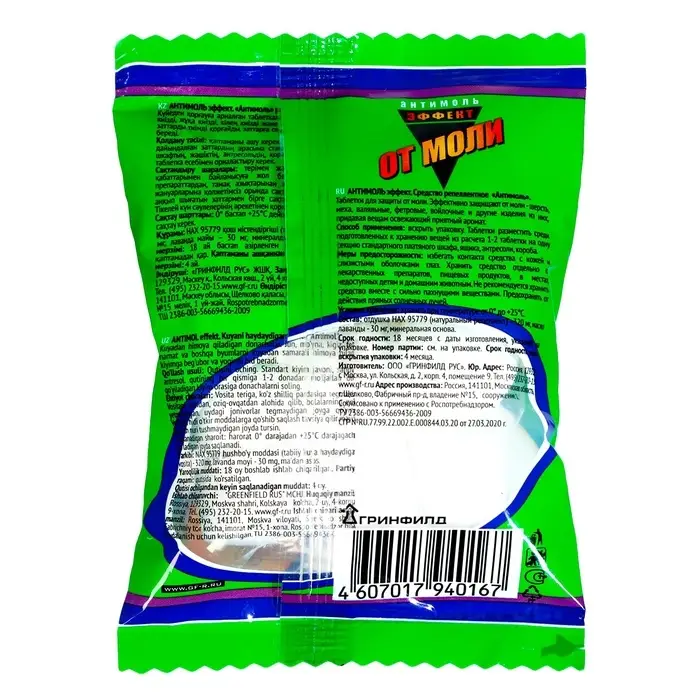 Таблетки для защиты от моли Selena - это компактное и надёжное решение для защиты шерсти, меха, войлочных и фетровых изделий от моли. Основным компонентом средства является натуральное лавандовое масло, произведённое в Германии, что позволит не только защитить вашу одежду от вредителей, но и придаст приятный аромат. Способ применения: вскрыть упаковку. Таблетки разместить среди подготовленных к хранению вещей из расчета 1-2 таблетки на одну секцию стандартного платяного шкафа, ящика, антресоли, короба. Одной упаковки средства будет достаточно для защиты среднего шкафа объёмом до 4-х кубических метров. Через 6 месяцев средство заменить на новое.
