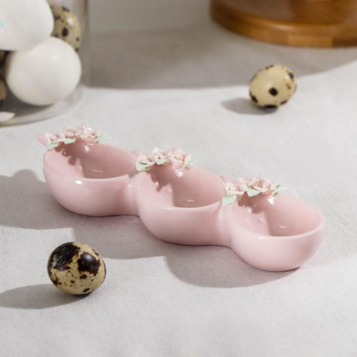 Менажница керамическая 3 ячейки «Кролик», 20×7×3 см, цвет розовый