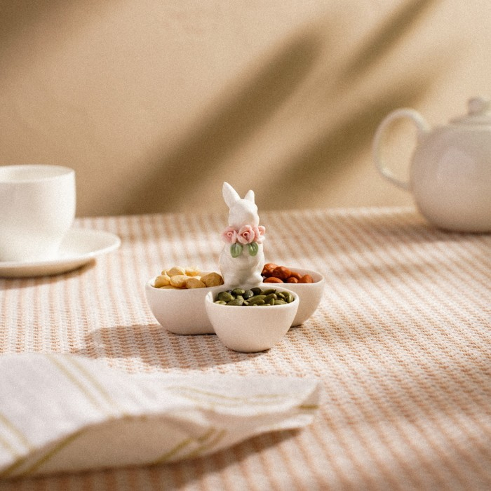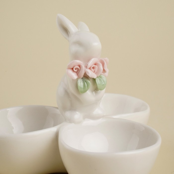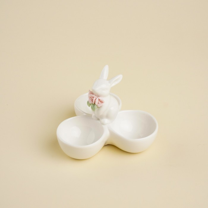 Менажница керамическая SL Home «Кролик», 3 ячейки, 30 мл, 11,5×9,5 см, цвет белый