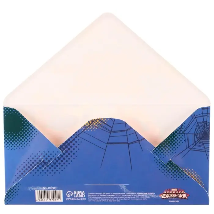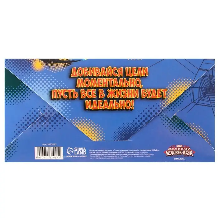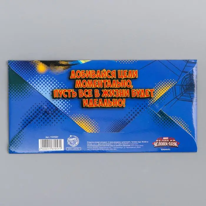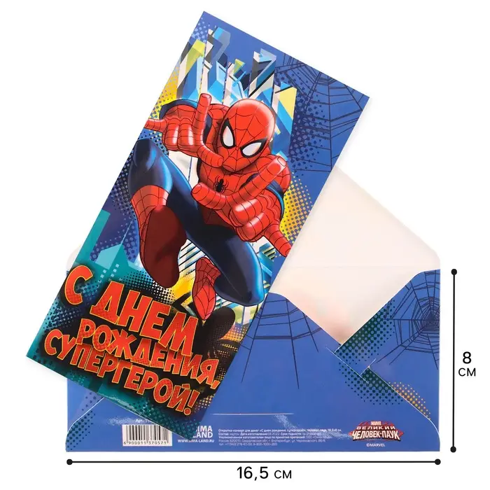 Конверт для денег, 16.5 х 8 см «С днём рождения, супергерой!», Человек-Паук