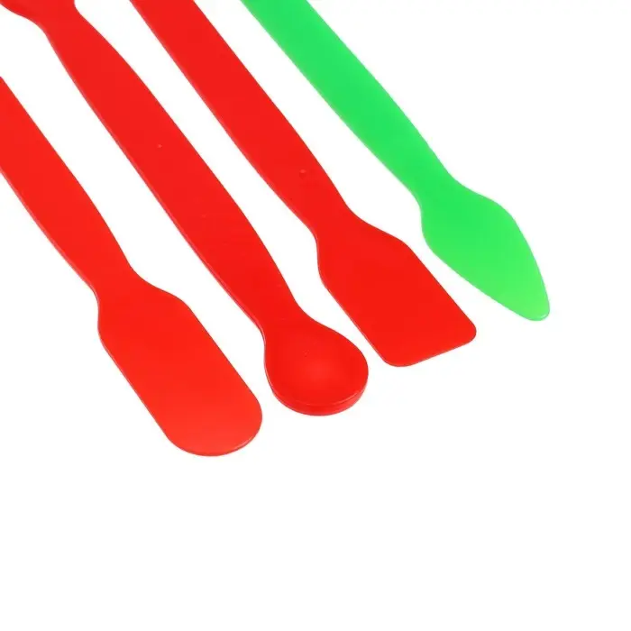 - В наборе 4 стека для лепки разного вида, назначения и цветов (красный, зеленый, синий).