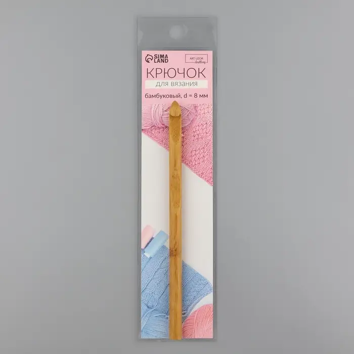 Крючок для вязания, бамбуковый, d=8 мм, 15 см