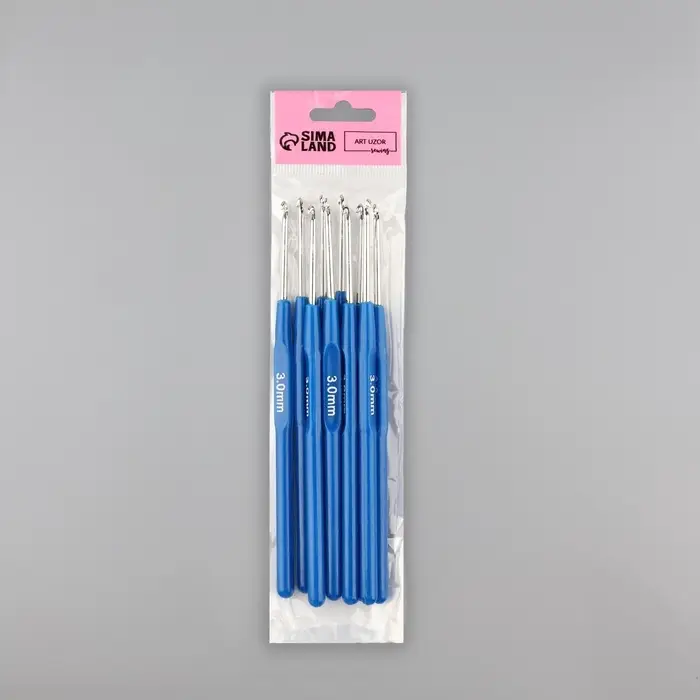Крючок для вязания, с пластиковой ручкой, d=3 мм, 13.5 см, синий