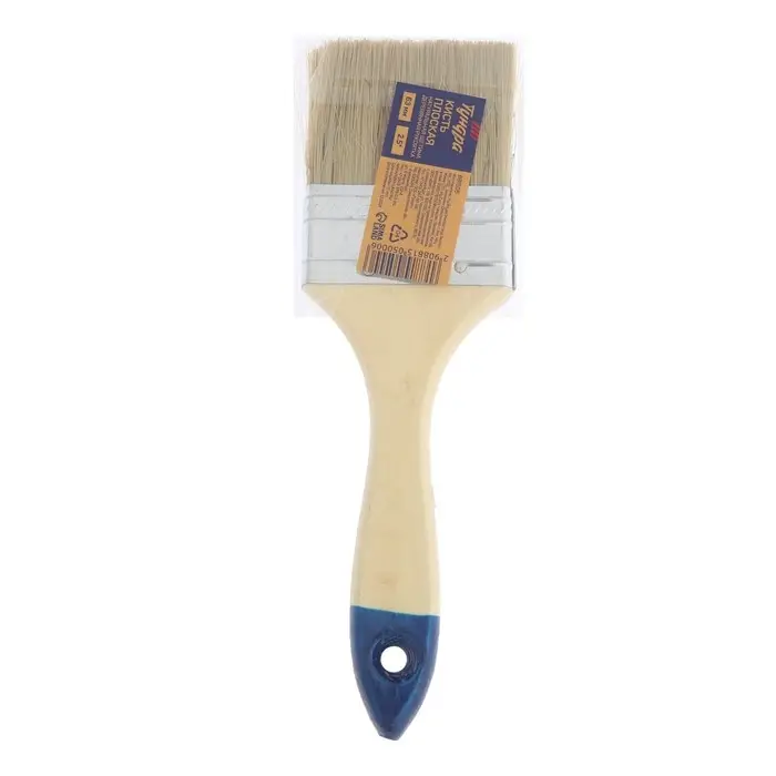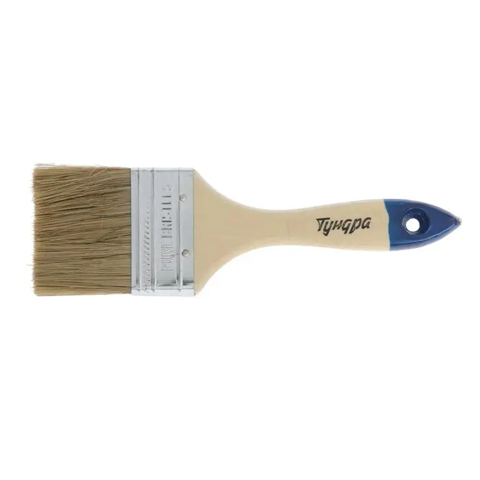 Кисть плоская ТУНДРА, натуральная щетина, деревянная рукоятка, 2.5", 63 мм