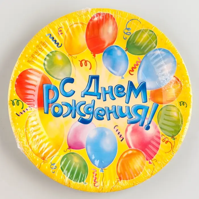 Тарелка одноразовая бумажная «С днем рождения», 18 см