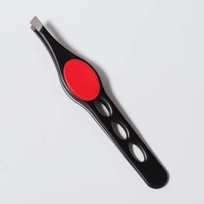 Конструкция со скошенными концами позволит избавиться от «излишков» самостоятельно: нужно всего лишь схватить с помощью пинцета волосок и потянуть его в нужном направлении. А удобный резиновый держатель не даст инструменту выскользнуть из рук.