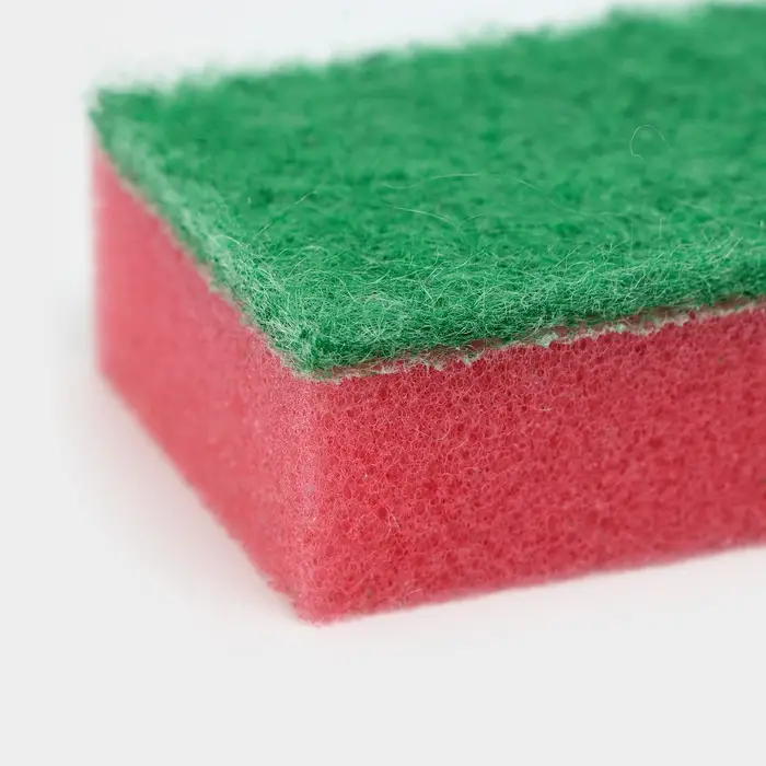 - Эффективность: абразивный слой быстро справляется с застарелыми загрязнениями, сокращая время уборки.