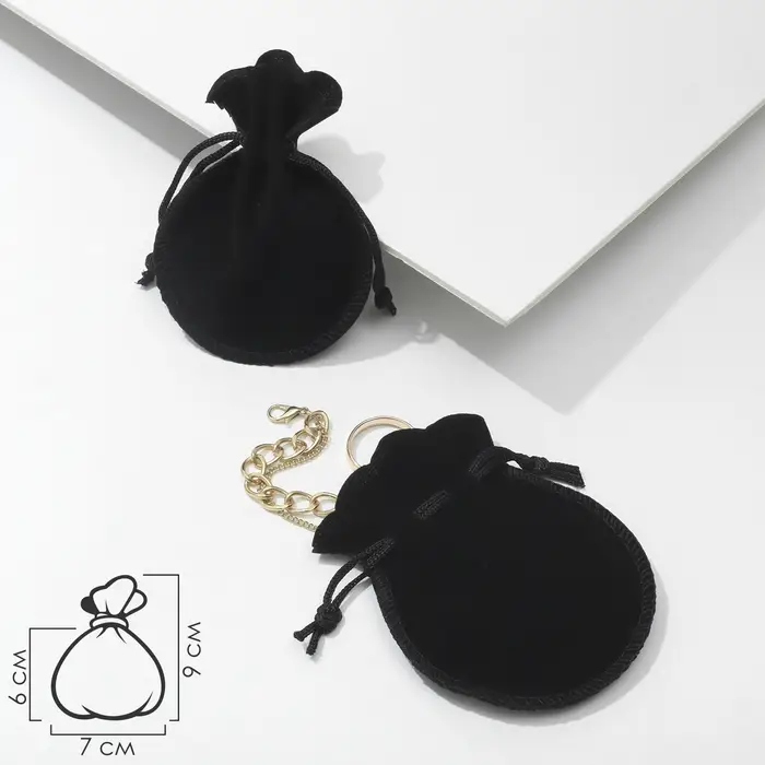 Мешочек бархатный, 7×9 (размер полезной части 7×6), чёрный