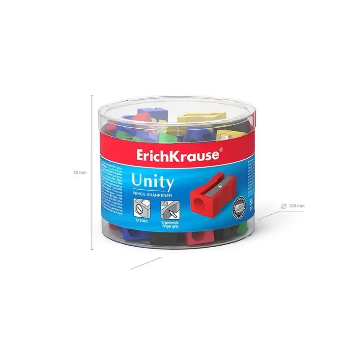 Точилка ErichKrause Unity, 1 отверстие диаметром 8 мм, МИКС