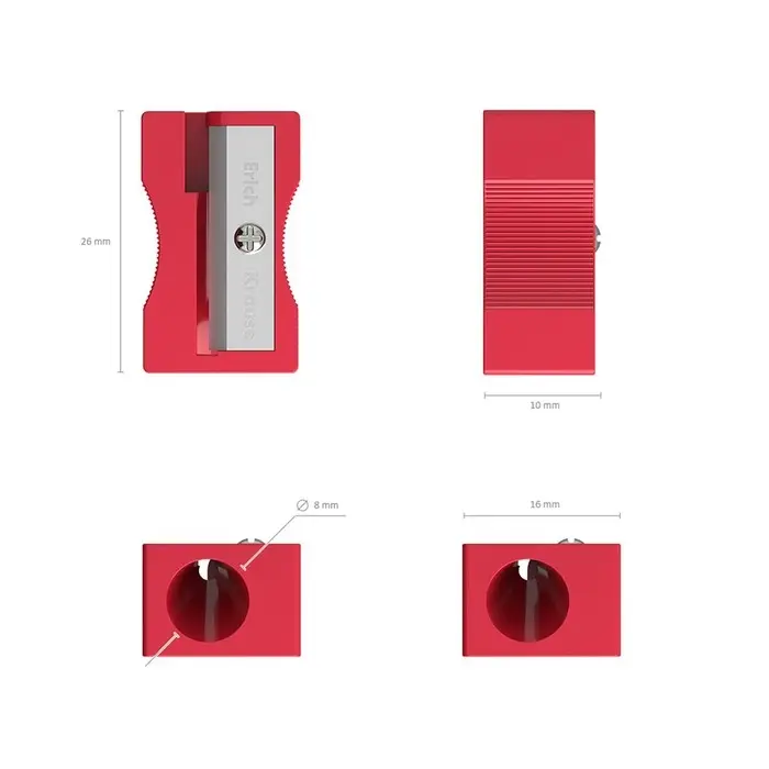 - Имеет отверстие диаметром 8 мм для заточки стандартных чернографитных и цветных карандашей.