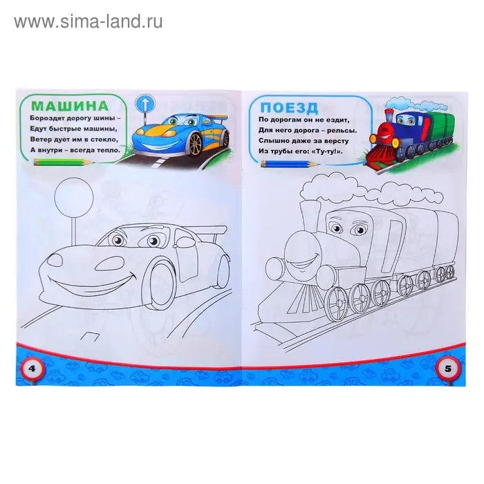 - 12 страниц с изображениями различных видов транспорта и заданиями для творческого дополнения.
