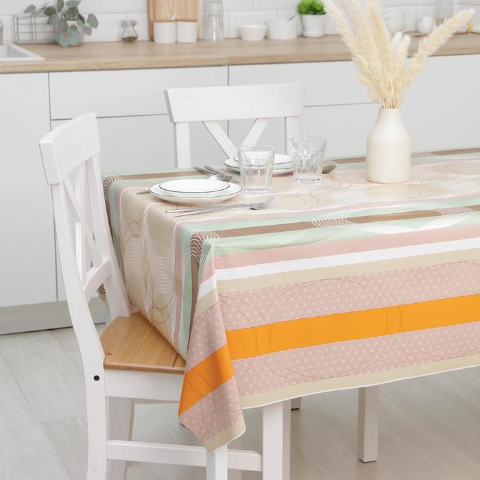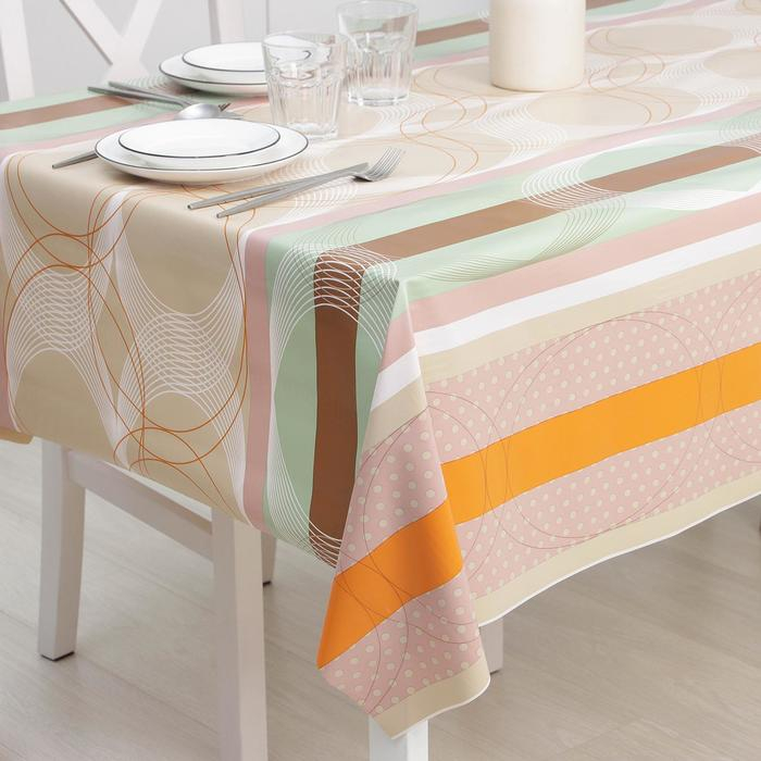 Клеёнка на стол Доляна «Макаруны», на тканевой основе, рулон 20 метров, ширина 137 см, общая толщина 0,22 мм, цвет бежевый