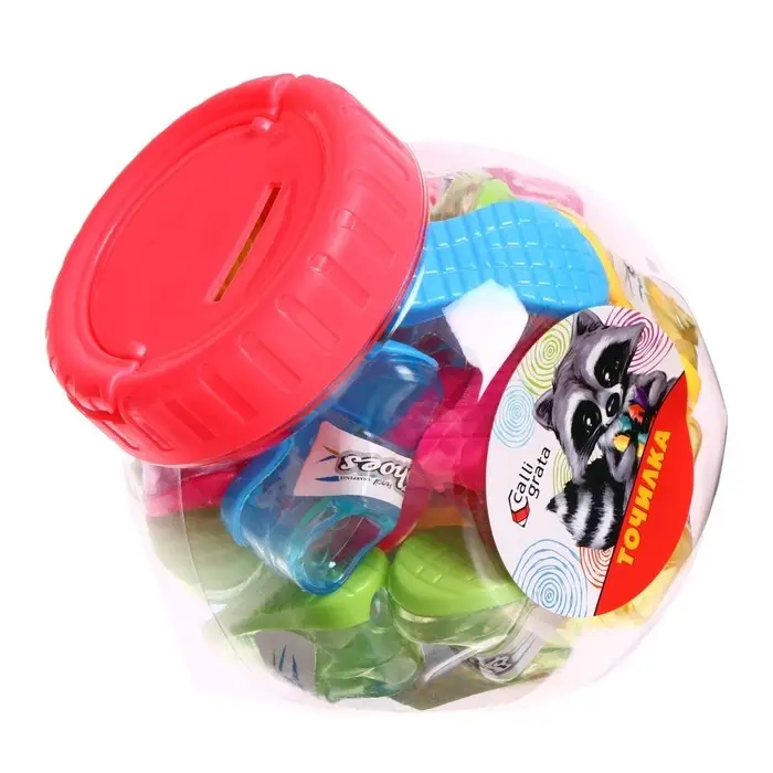 Точилка 1 отверстие с контейнером ErichKrause "S-Cube" с контейнером, МИКС 4 вида
