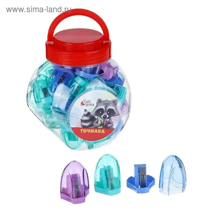 Точилка с контейнером, прозрачная, МИКС