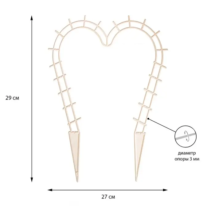 Шпалера «Сердечко» станет очаровательным дополнением вашего сада или балкона, придавая растущим растениям необходимую опору и формируя оригинальные зёленые композиции. Этот аксессуар отличается компактными размерами, что позволяет размещать его даже в ограниченном пространстве, например, на подоконнике или террасе.