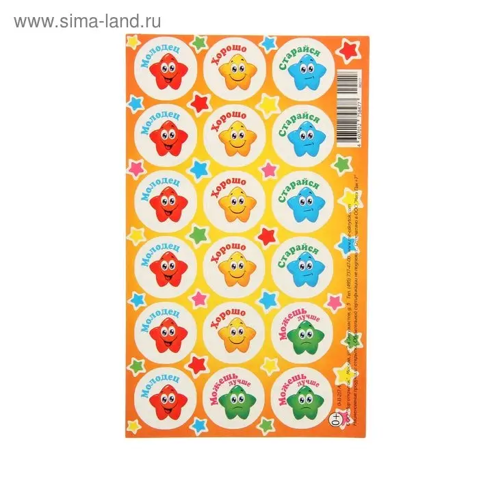 Наклейки детские, поощрительные «Цветные звёздочки»