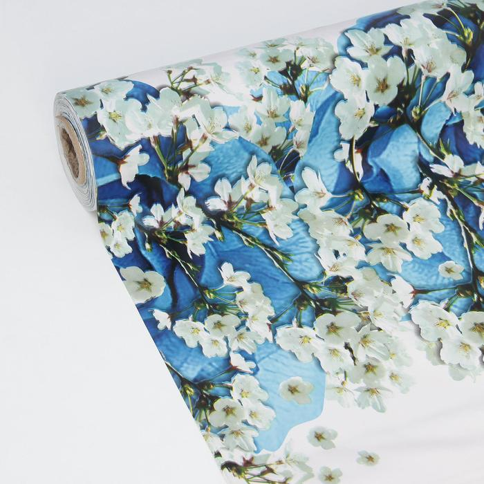 Клеёнка на стол Доляна «Синие розы», на тканевой основе, рулон 20 метров, ширина 137 см, общая толщина 0,22 мм, цвет синий