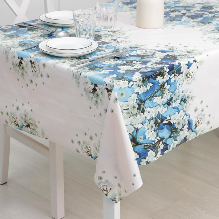 Клеёнка на тканевой основе «Синие розы» в 3–4 раза прочнее обычных аналогов. Такой материал не мнётся и не деформируется. ПВХ-основа делает клеёнку максимально простой в уходе. Любая грязь устраняется быстро: с помощью простой влажной тряпочки вы без особых усилий приведёте стол в порядок.