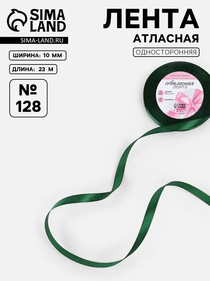 Лента атласная, 10 мм, 23±1 м, тёмно-зелёная №128