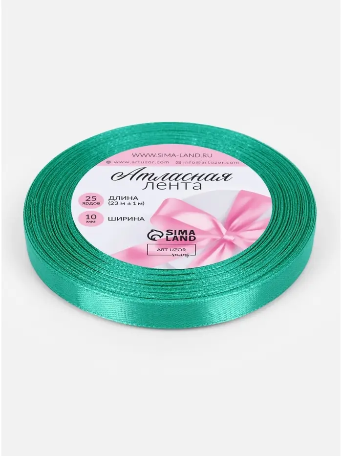 Лента атласная, 10 мм, 23±1 м, бирюзовая №54