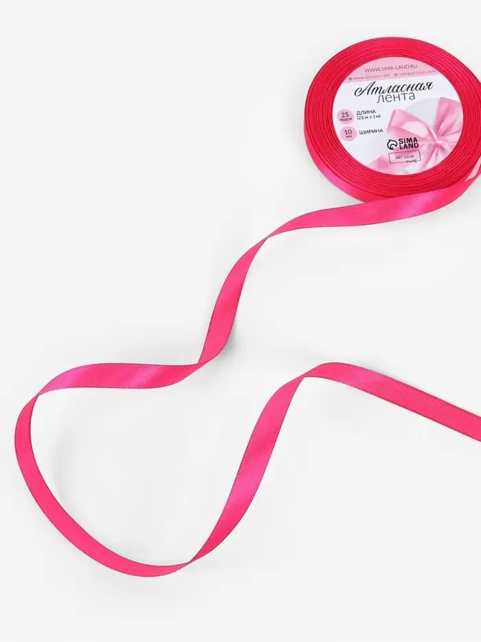 Атласная лента гладкая и приятная на ощупь. Используйте её для отделки изделий, украшения подарков, свадебного оформления, а также в техниках скрапбукинг и канзаши.