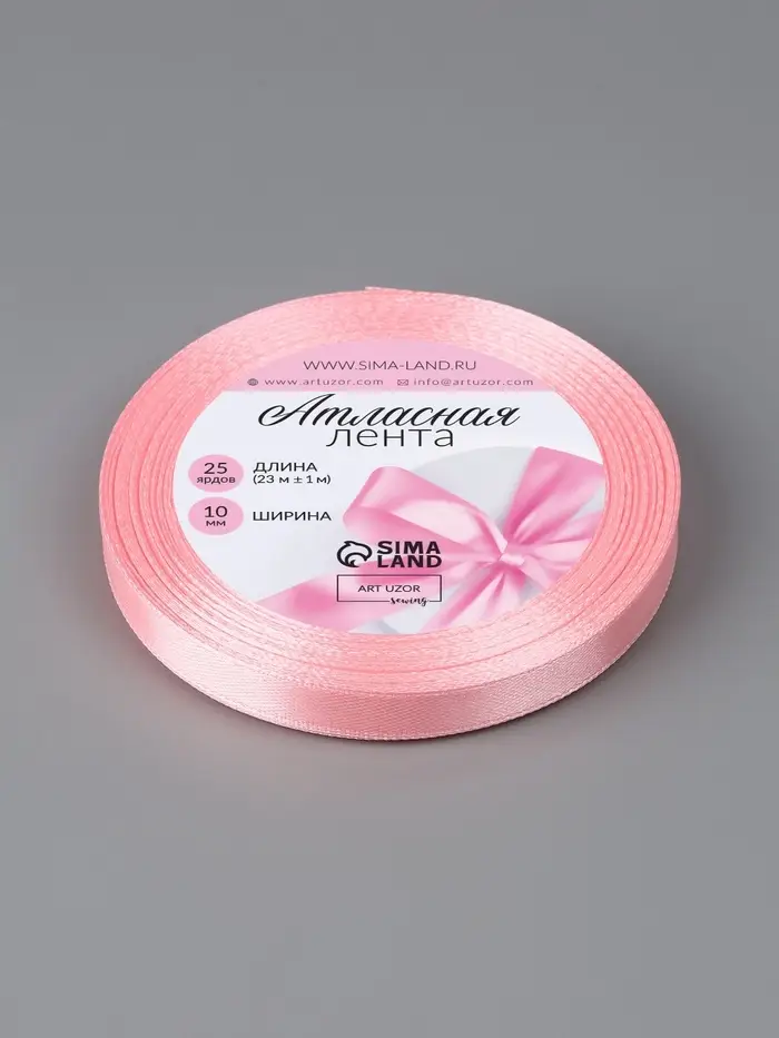 Лента атласная, 10 мм, 23±1 м, розовая №04