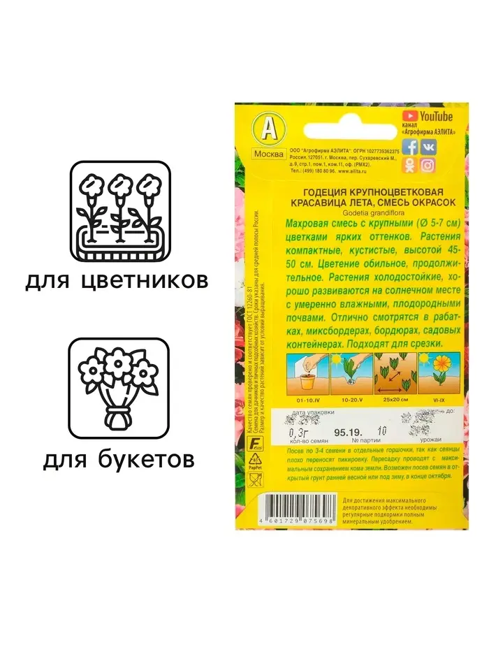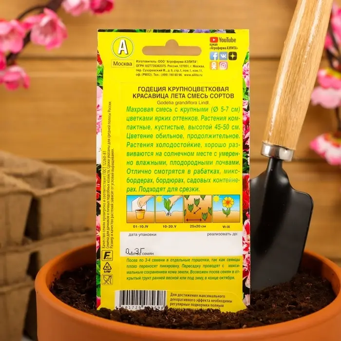 Семена цветов Годеция "Красавица лета" крупноцветковая, смесь окрасок, О, 0,05 г