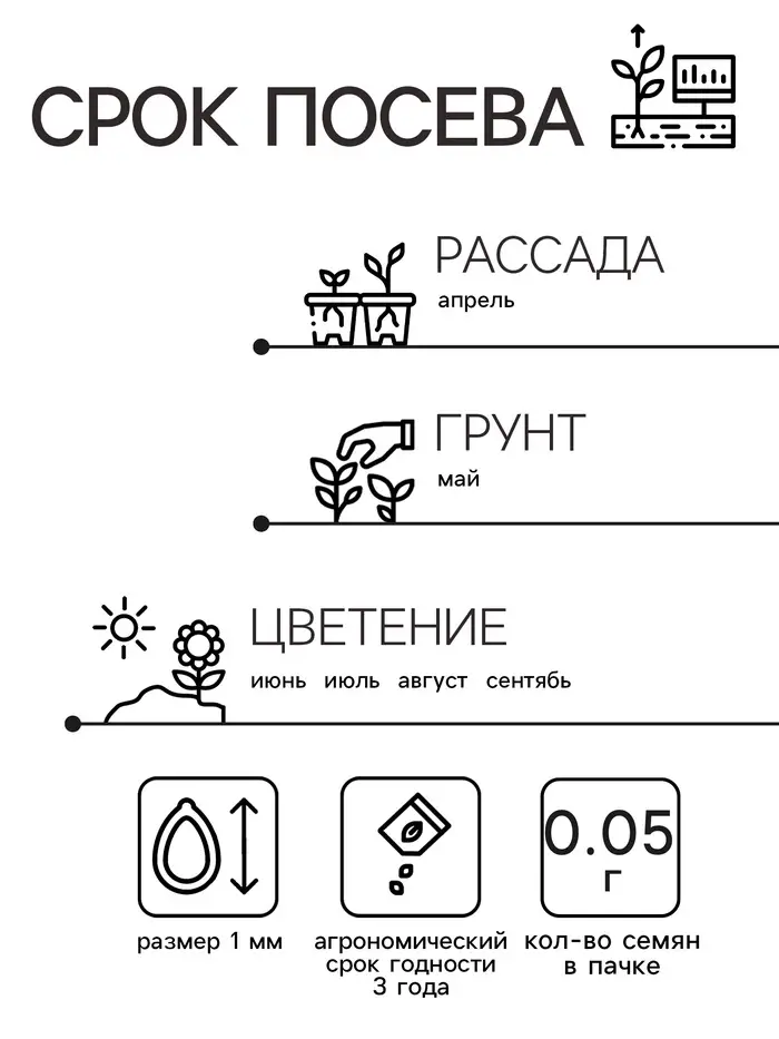 Сеют на рассаду по 3–4 семени в отдельные горшочки, так как сеянцы плохо переносят пикировку. Рассаду в открытый грунт высаживают до окончания возвратных заморозков. Возможен посев семян в открытый грунт ранней весной или под зиму, в конце октября.