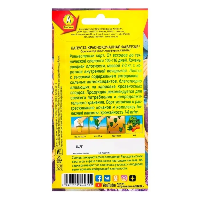 Семена Капуста краснокачанная "Фаберже", 0,2 г