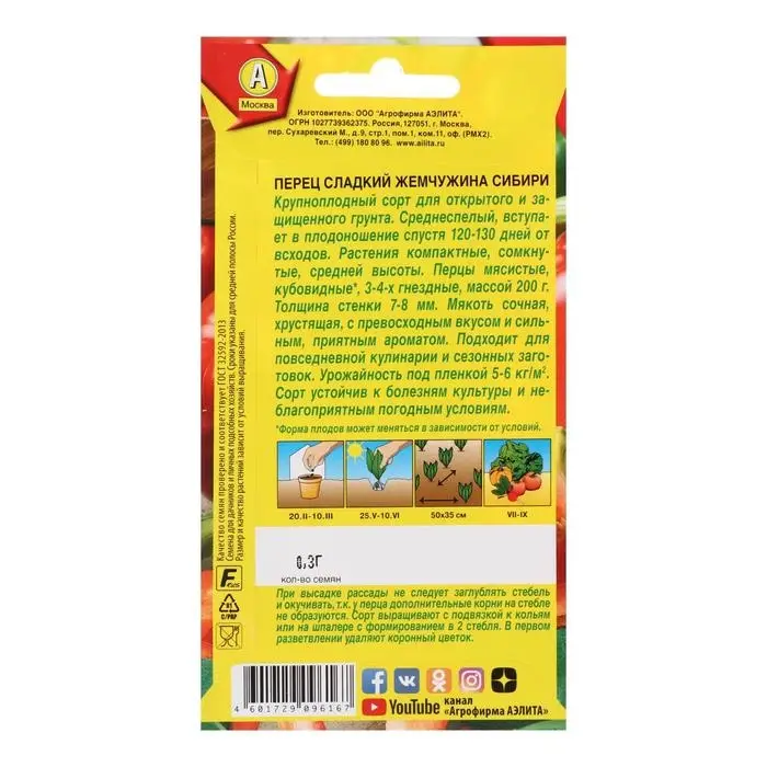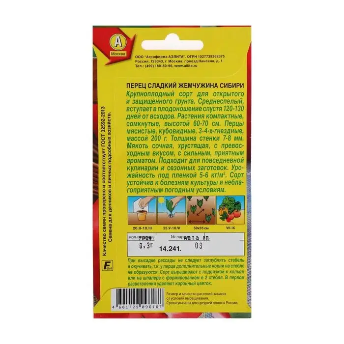 Семена Перец сладкий "Жемчужина сибири", 20 шт
