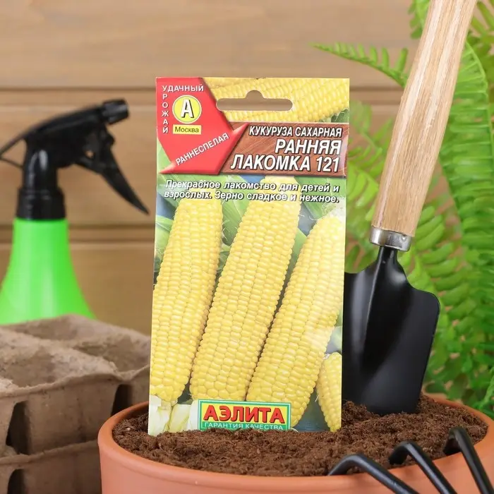Семена сахарной кукурузы «Ранняя лакомка» — раннеспелый, высокоурожайный сорт сахарной кукурузы. Растение высотой 140–150 см.