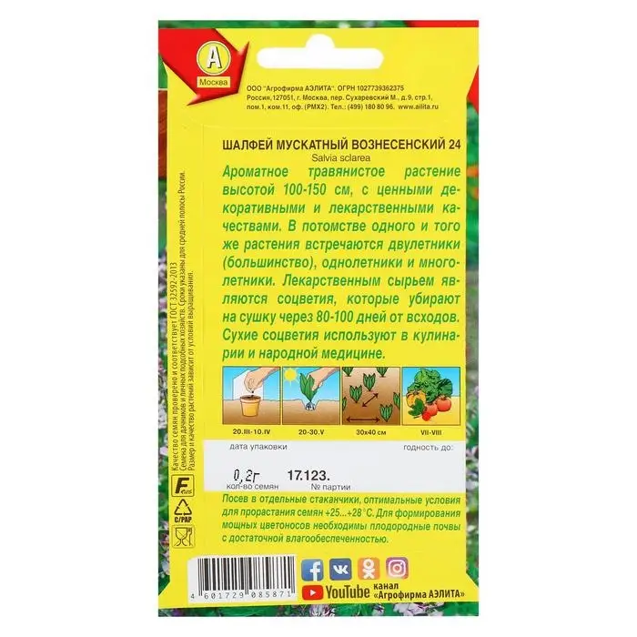 Семена Шалфей мускатный "Вознесенский 24", 0,2 г