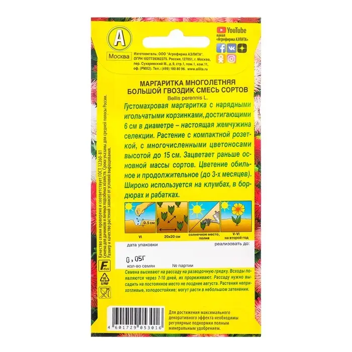 Семена цветов Маргаритка "Большой гвоздик", 0,05 г