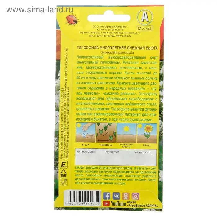 Семена цветов Гипсофила "Махровая белая", ц/п, 0,05 г