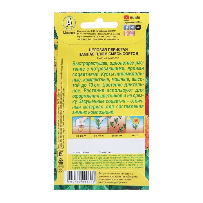 Семена цветов Целозия перистая "Пампас Плюм", смесь окрасок, О, 0,3 г