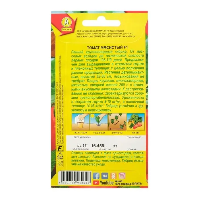 Семена Томат "Мясистый" F1, раннеспелый, 20 шт