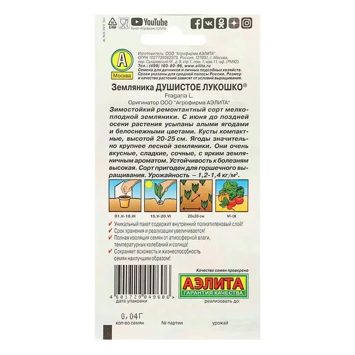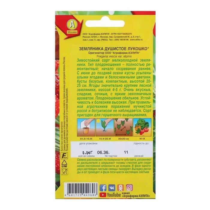 Семена Земляника "Душистое лукошко" альпийская, 0,04 г