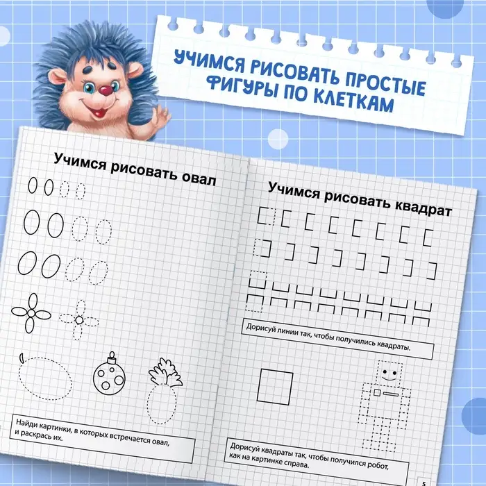 Всё в мире состоит из геометрических форм! Запомнить и научиться их писать очень просто — достаточно воспользоваться помощью прописей «Простые фигуры». Здесь каждая страница имеет свою тему — геометрическую фигуру. Обводите формы по пунктирным линиям и выполняйте занимательные задания, указанные внизу страницы. Учитесь и развивайтесь с малых лет!