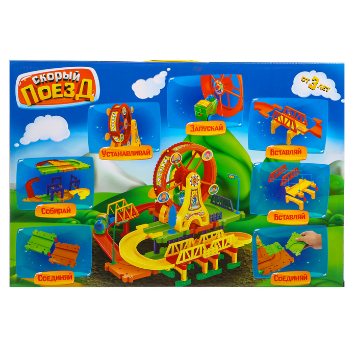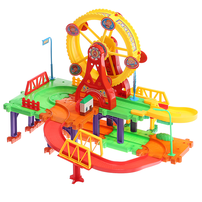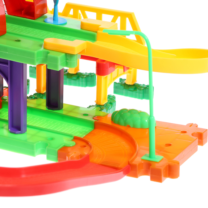 Совершите захватывающее путешествие по яркой и необычной железной дороге. Малыш сам соберёт красочный трек и отправится навстречу приключениям.