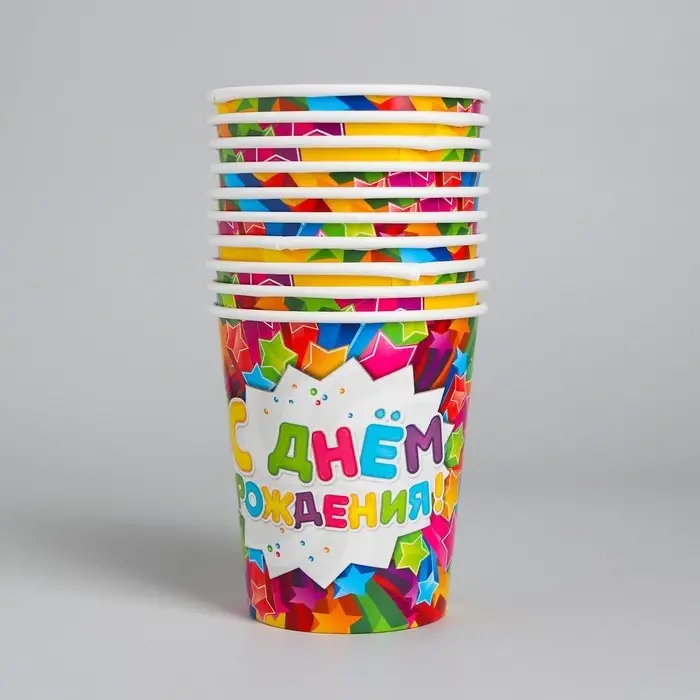 Стакан одноразовый бумажный «С днем рождения», 250 мл