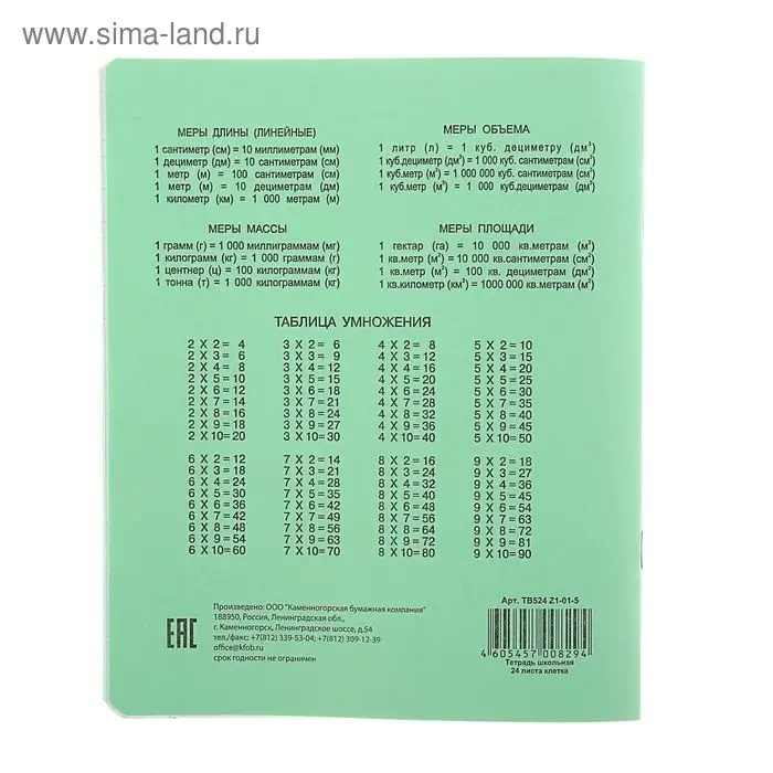 Тетрадь 24 листов клетка «Зелёная обложка», белизна 95% (по 20 штук в запайке)