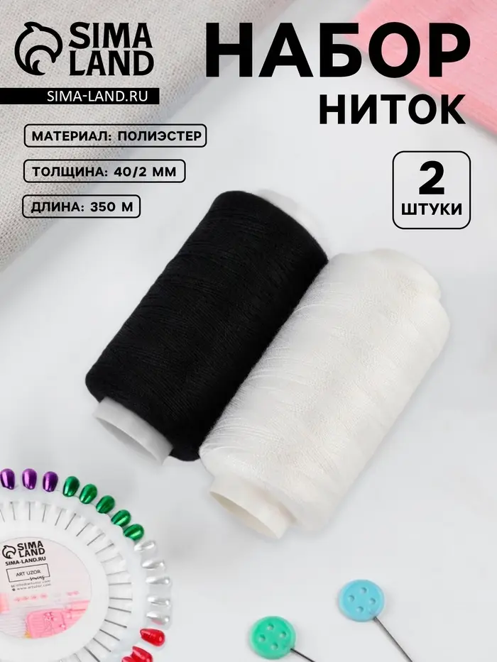 Набор ниток 40/2, 2 шт., 350 м, чёрный, белый