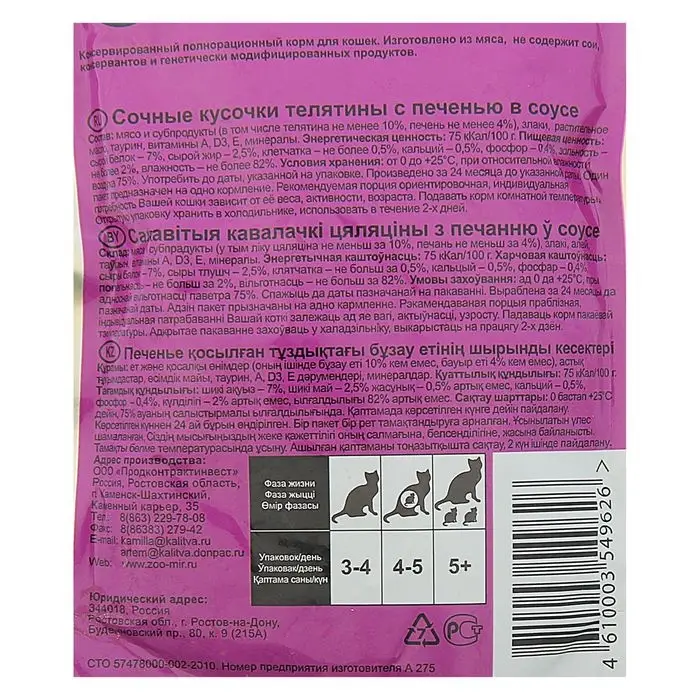 Влажные корма для кошек используются в разных смешанных рационах. Их можно давать в дополнение к натуральной пище или сухим гранулам. Норма кормления указана на упаковке.