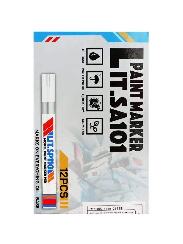 Маркер-краска, лаковый наконечник, пулевидный 4 мм, ширина линии 2.5 мм, синяя, цена за 1 штуку