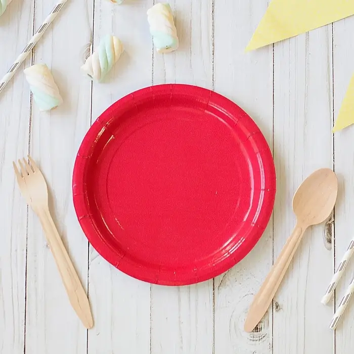 Тарелка одноразовая бумажная однотонная, красная, 18 см