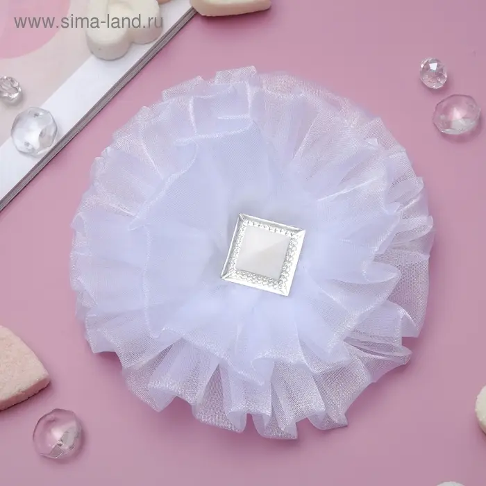 Резинка для волос бант «Школьница», волна квадрат, d=10 см, белая