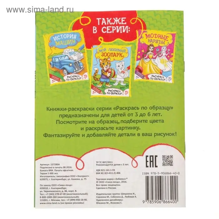 Кроха с удовольствием будет раскрашивать интересные картинки, а образцы помогут ему правильно подобрать нужные цвета.