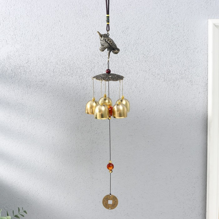 Музыка ветра металл "Денежная жаба на монетках" 5 колокольчиков 41х6 см