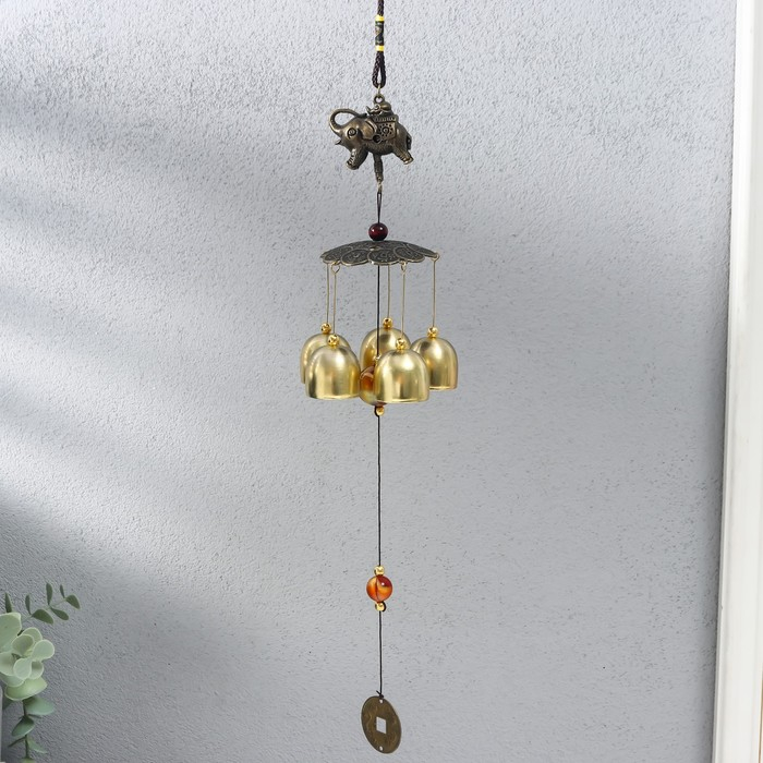 Музыка ветра металл "Слон на монетках" 5 колокольчиков 41х6 см